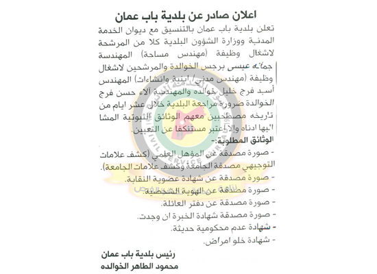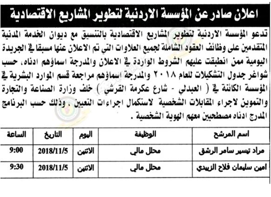 دعا ديوان الخدمة المدنية بالتعاون مع مختلف الوزارات والمؤسسات الحكومية، التالية اسماؤهم لاجراء المقابلات الشخصية لغايات التعيين.