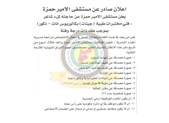 وبحسب ديوان الخدمة، فإن كل من يتخلف عن الحضور يعتبر مستنكفا عن التعيين، داعيا التالية اسماؤهم احضار اثبات للشخصية.