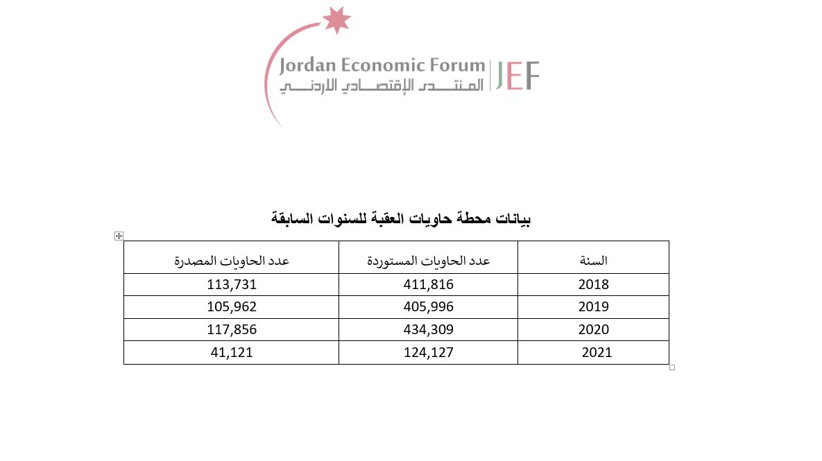 وحسب بيانات دائرة الإحصاءات العامة، بلغت المستوردات ما مجموعه 12.077 مليار دينار خلال العام الماضي، كما بلغ عدد الحاويات في الأردن بحسب بيانات محطة حاويات العقبة للسنوات السابقة ولغاية نهاية شهر نيسان/أبريل الماضي 62064 حاوية مستوردة، و9209 حاوية مصدرة، بينما في العام الماضي 217155 حاوية مستوردة و24754 حاوية مصدرة.