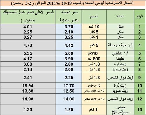 اسعار السلع ليومي الجمعة والسبت"جدول"