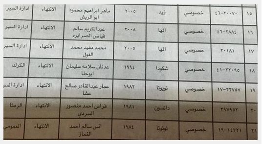 طلبت إدارة ترخيص السواقين والمركبات الأحد من مالكي المركبات