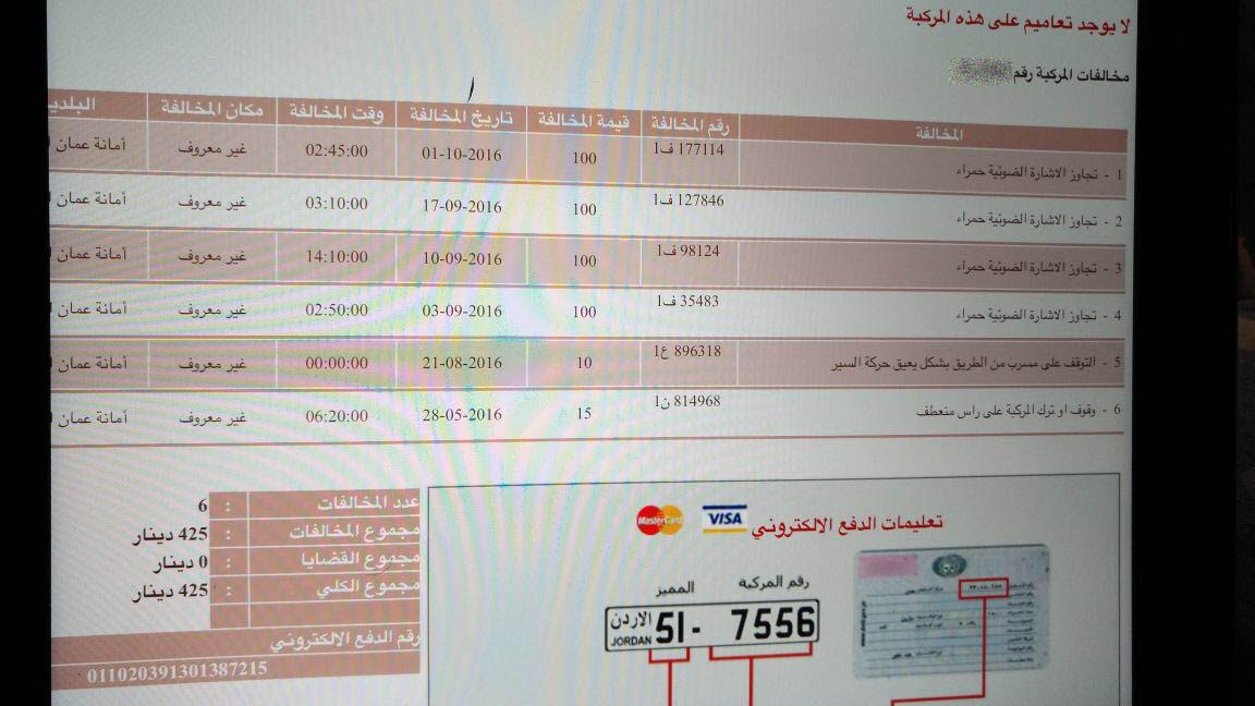 تفاجأت زميلة صحفية من تسجيل أربع مخالفات على سيارتها تحت ذريعة تجاوز اشارة ضوئية على مدى اربعة اسابيع متتالية بقيمة بلغت 400 دينار، على الرغم من انها كانت خارج البلاد اثناء تقييد المخالفات .