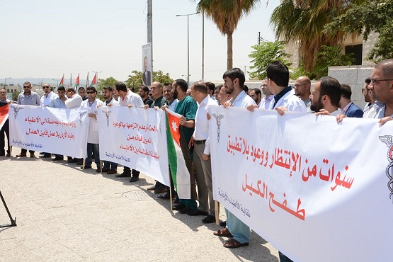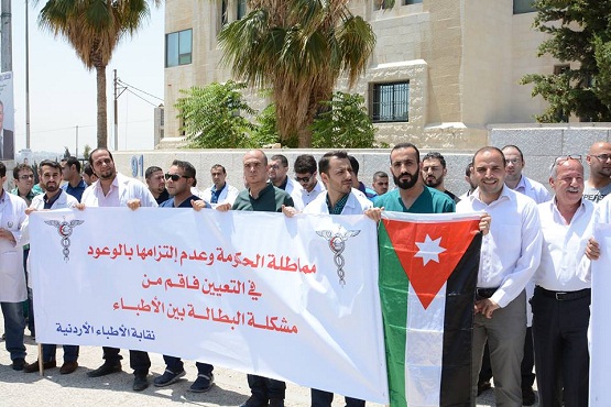 وقال الأطباء المعتصمون "إن الحكومة لم توفر لهم فرص عمل منذ تخرجهم من الجامعات ومعظمهم خريجوا جامعات أردنية".
