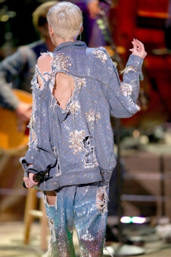 وتميزة اطلالة هيفاء ببنطال مزين بالاستراس الملون و الممزق من الاقدام بشكل ملفت وغريب لتنافس بذلك المغنية الامريكية مايلي سايروس في ارتداء الملابس الممزقة وغالية الثمن .