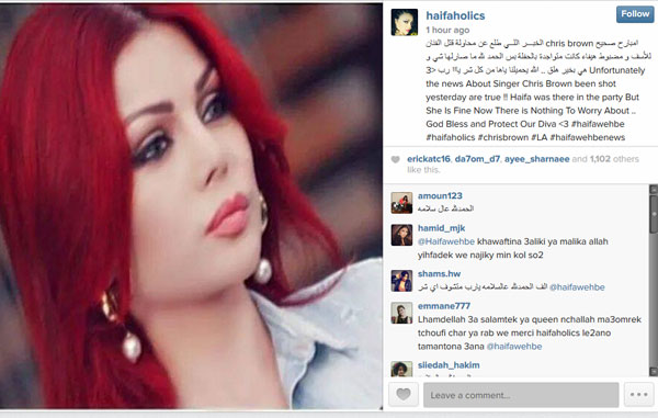 لحظات رعب عاشتها النجمة اللبنانية هيفاء وهبي خلال حضورها حفل النجم العالمي كريس براون، والتي أقامها احتفالاً بقرب صدور أحدث ألبوماته في الملهى الليلي 1 oak club، بلوس أنجلوس.