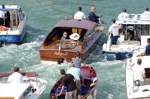 وكالعادة خلال فترة وجودهما في البندقية، حاصر المصورون والشرطة الزورق الذي يستقلانه ويحمل اسم "أموري" (الحب).