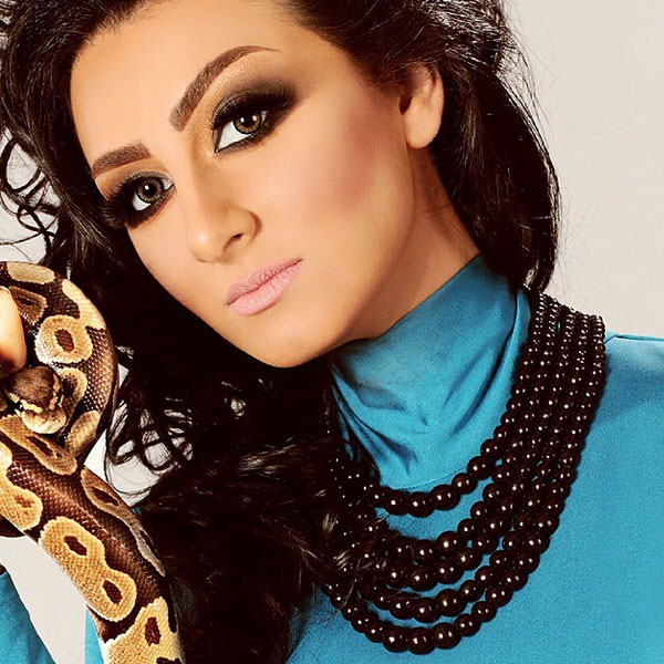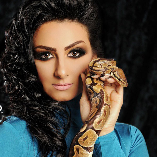أما في الجلسة الثانية ظهرت بشعر غجري، وماكياج ثقيل، وأمسكت بثعبان كبير في يدها.