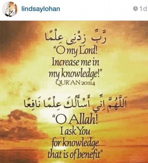ونقلت صحيفة ديلي ميل البريطانية أن لوهان نشرت من قبل عبر صفحتها الخاصة على احد مواقع التواصل الإجتماعي، آيات من القرآن، لكنها حذفتها لاحقاً، ما جعل البعض يتساءل عن حقيقة إعتناق لوهان الدين الإسلامي؟!.
