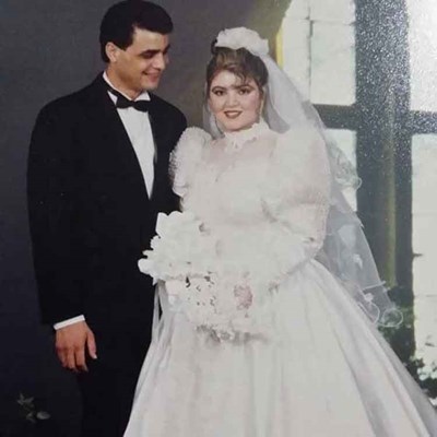 ثم علقت على صورتها مع عريسها مجدي كامل: "أنا ومجدي، كان قد تخرج للتو وأنا طالبة في آخر سنة في المعهد".