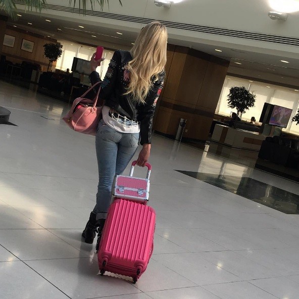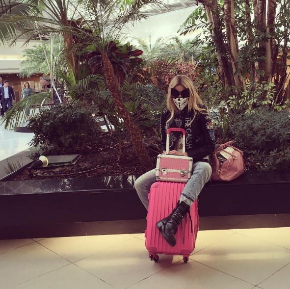 ونشرت كلينك الصور عبر حسابها على موقع التواصل الاجتماعي "انستغرام" وعلّقت عليها بالقول: "متوجهة إلى دبي ليلًا، سأقوم باختطاف الطائرة".
