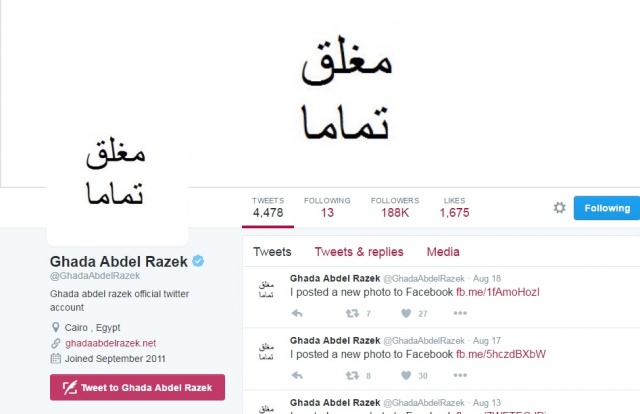 إلاّ أنّ روّاد هذه المواقع، صدموا بصورة على حسابات غادة على "تويتر" و"فايسبوك" و"انستغرام"، حيث كتب: "مغلق تماماً".