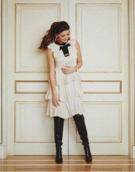 أحببنا إطلالتها التي نشرتها مؤخراً على حسابها الخاص في "إنستغرام"، حيث ارتدت فستاناً من توقيع غوتشي لخريف وشتاء 2015 باللون off white تمير بالجاذبية والرقي، يحمل عقدة كبيرة عند العنق، ويتميز بثلاث طبقات من الكشاكش، ويبلغ ثمن التصميم نحو 3.915 دولاراً أميركياً، وأكملت إطلالتها بجزمة طويلة سوداء.