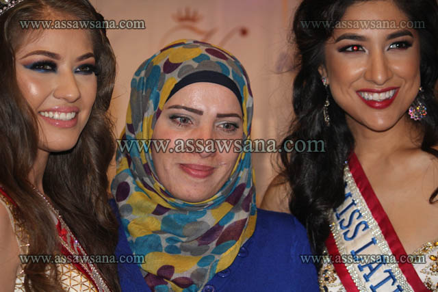 اللافت في الحفل ان اغلب السيدات ومنهن المحجبات، اصرن على القدوم الى المنصة وطلب التصوير مع ملكات جمال العالم في اميركا اللاتينية.
