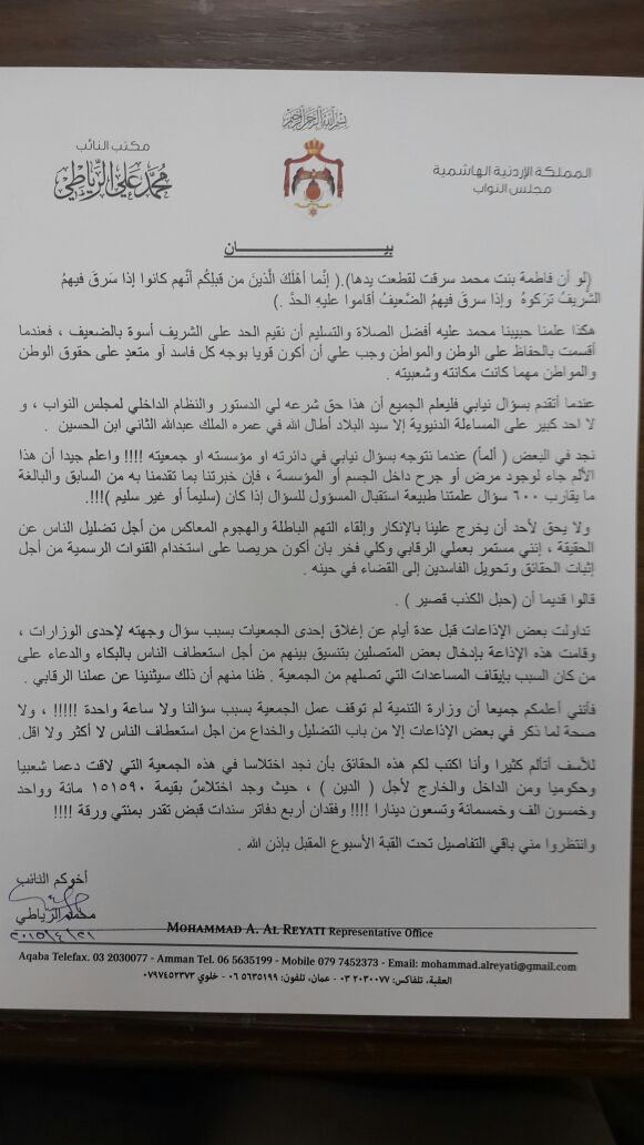 *النائب الرياطي يثبت اختلاساً باكثر من 150 الف دينار في جمعية الشيخ نوح للرفادة ، والتفاصيل تحت القبة قريبا !!!!