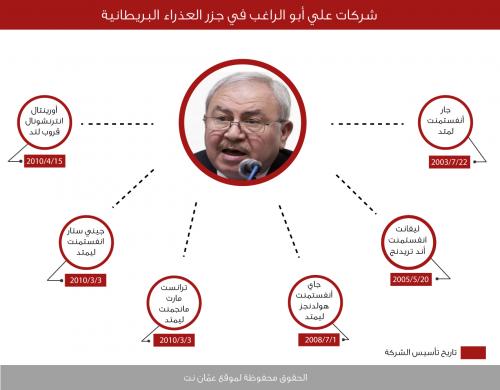 وبينما كان يجلس أبو الراغب على كرسي مجلس الأعيان (2007 -2010)، أدار ثلاث شركات أوف شور في سيشيل، شركتان منهن تأسستا في نفس اليوم بتاريخ ( 3 آذار 2010)، فيما سجل الثالثة بعد شهر من ذلك.