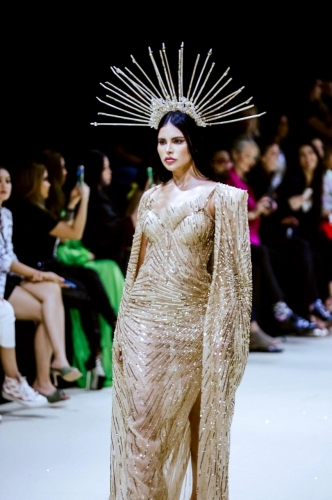 وإلى ذلك، قدمت المصممة المصرية مرام برهان في العرض الأول تصاميم فساتين الزفاف والسهرة المستوحاة من أسفارها والعناصر الموجودة في الطبيعة، التي تغازل الفخامة والرقة في آن واحد، فجاءت غنية وساحرة تروي القصص الخيالية من خلال كل تصميم مصنوع يدوياً بدقة ومشغول من أقمشة الدانتيل والحرير الطبيعي.