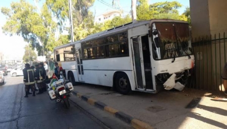 5 اصابات احداها بليغة بتدهور حافلة كبيرة في شارع الجيش