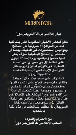 وبمجرد إنتشار خبر غضب زياد برجي مما تناقلته وسائل الإعلام، قامت إدارة المرويكس دور بالرد سريعاً، مؤكدة أن هناك بعض الاخبار المغلوطة التي تتناقلها المواقع الإلكترونية ويهمنا أن نعلمكم أن النتائج الحقيقية سوف يعلن عنها يوم الأحد حصراً ومباشرة على محطة الـال بي سي أي بكازينو لبنان وأن التكريمات والجوائز ستوزع على النجوم حسب تصويت لجنة التحكيم والجمهور وان أمانة سر الموريكس دور لم تبلغ على الإطلاق أي فنان عن فئة نجم الغناء اللبناني غير الفنان الفائز الذي سوف يعلن عن إسمه خلال المهرجان"