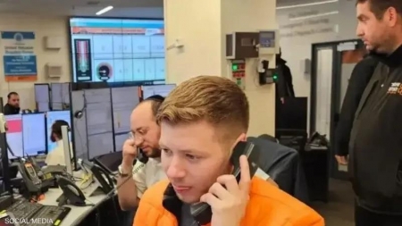 ونشرت المؤسسة صورة له وهو يرد على المكالمات الهاتفية التي تطلب المساعدة في غرفة العمليات.