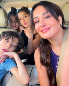 صورة لطيفة للفنانة كندا حنا برفقة أولادها