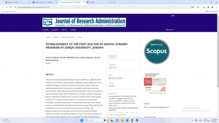 ضمن خطة كلية طب الأسنان في جامعة الزرقاء لتطوير البحث العلمي وتقديم أفضل الأبحاث التي تخدم العملية التعليمية والبحثية، تميزت الكلية في نشر ورقة علمية خاصة بمجلة علمية عالمية ومحكمة حول الخطة الدراسية لبرنامج دكتور في طب الأسنان بجامعة الزرقاء.