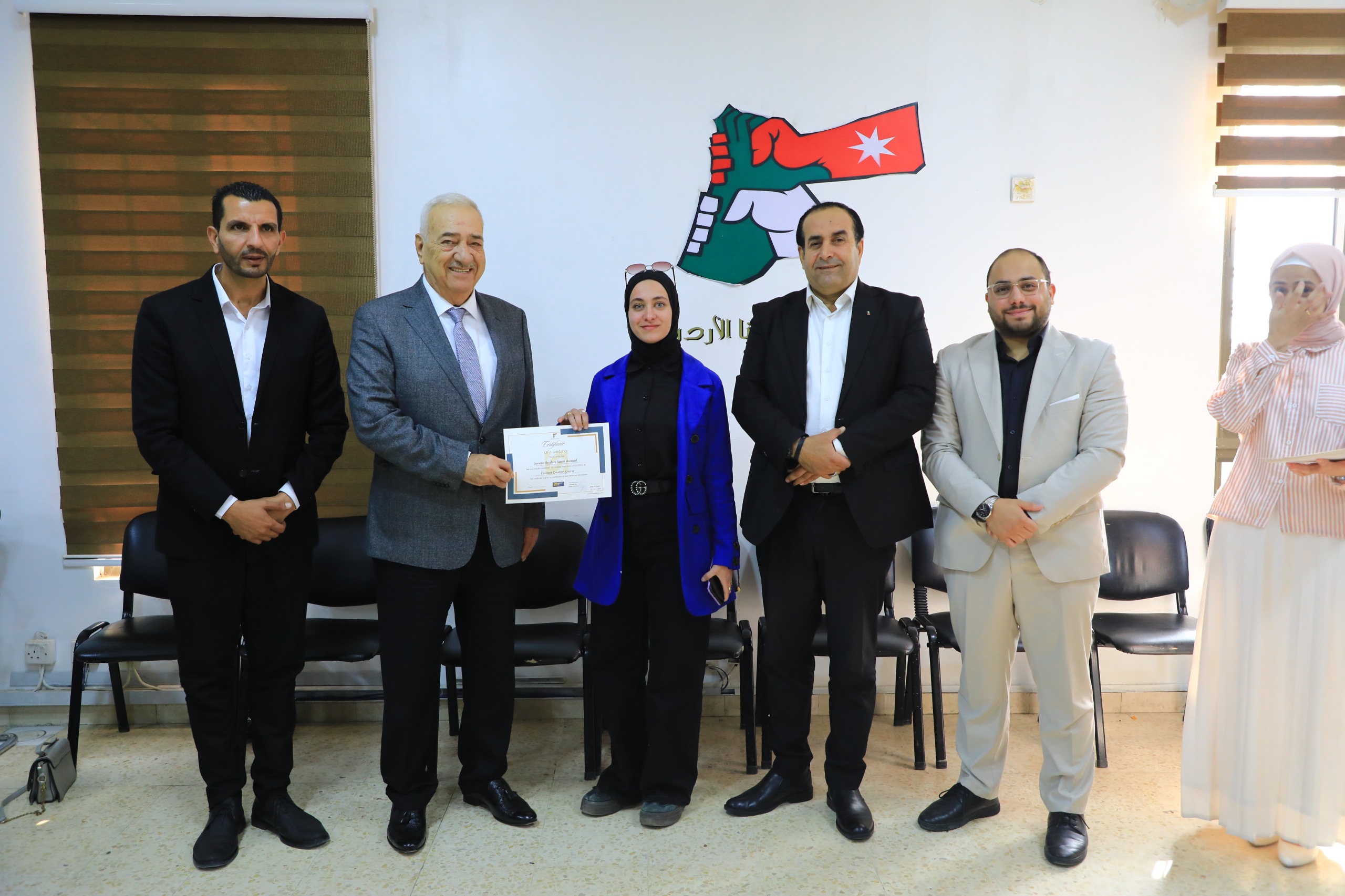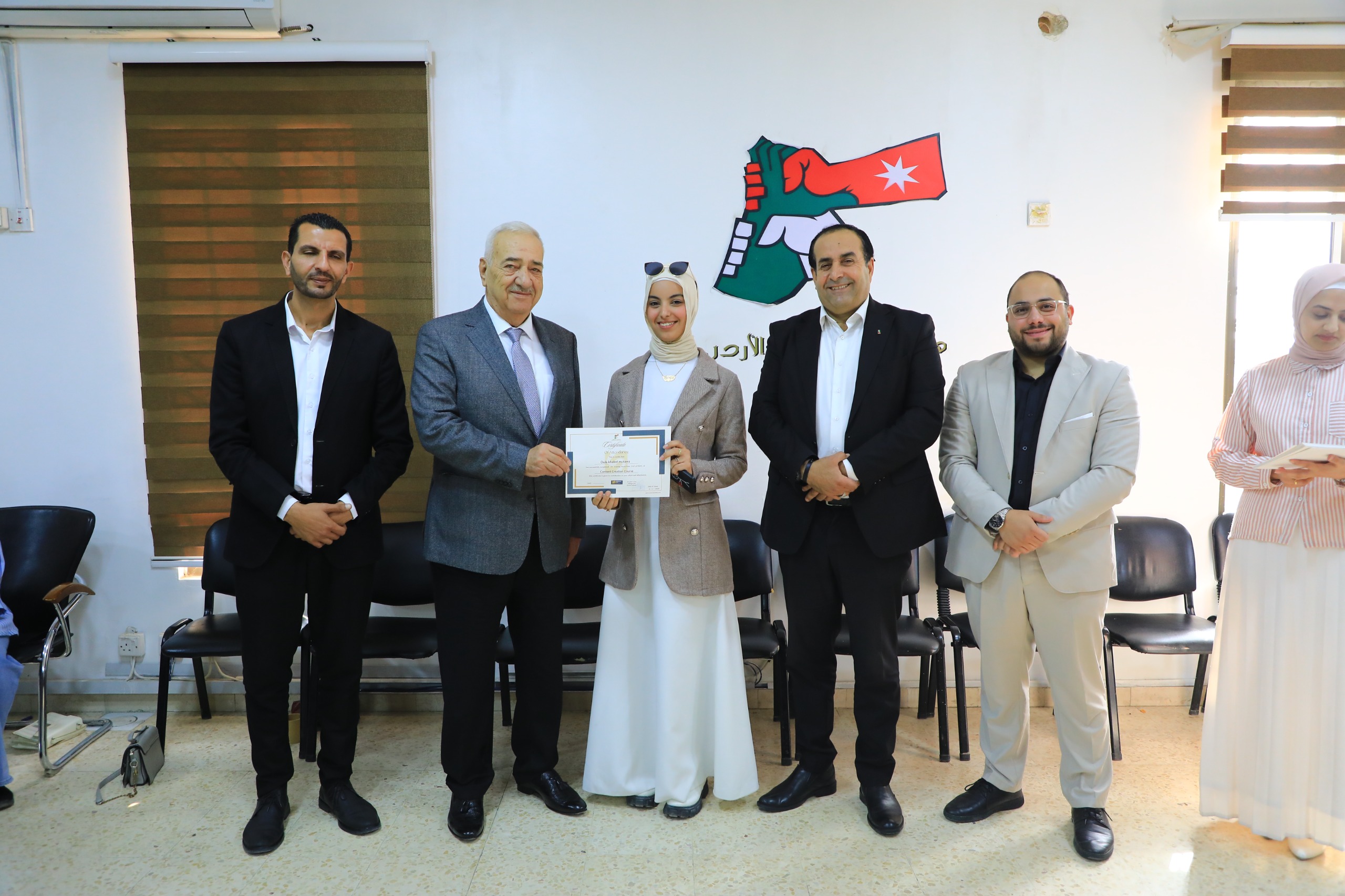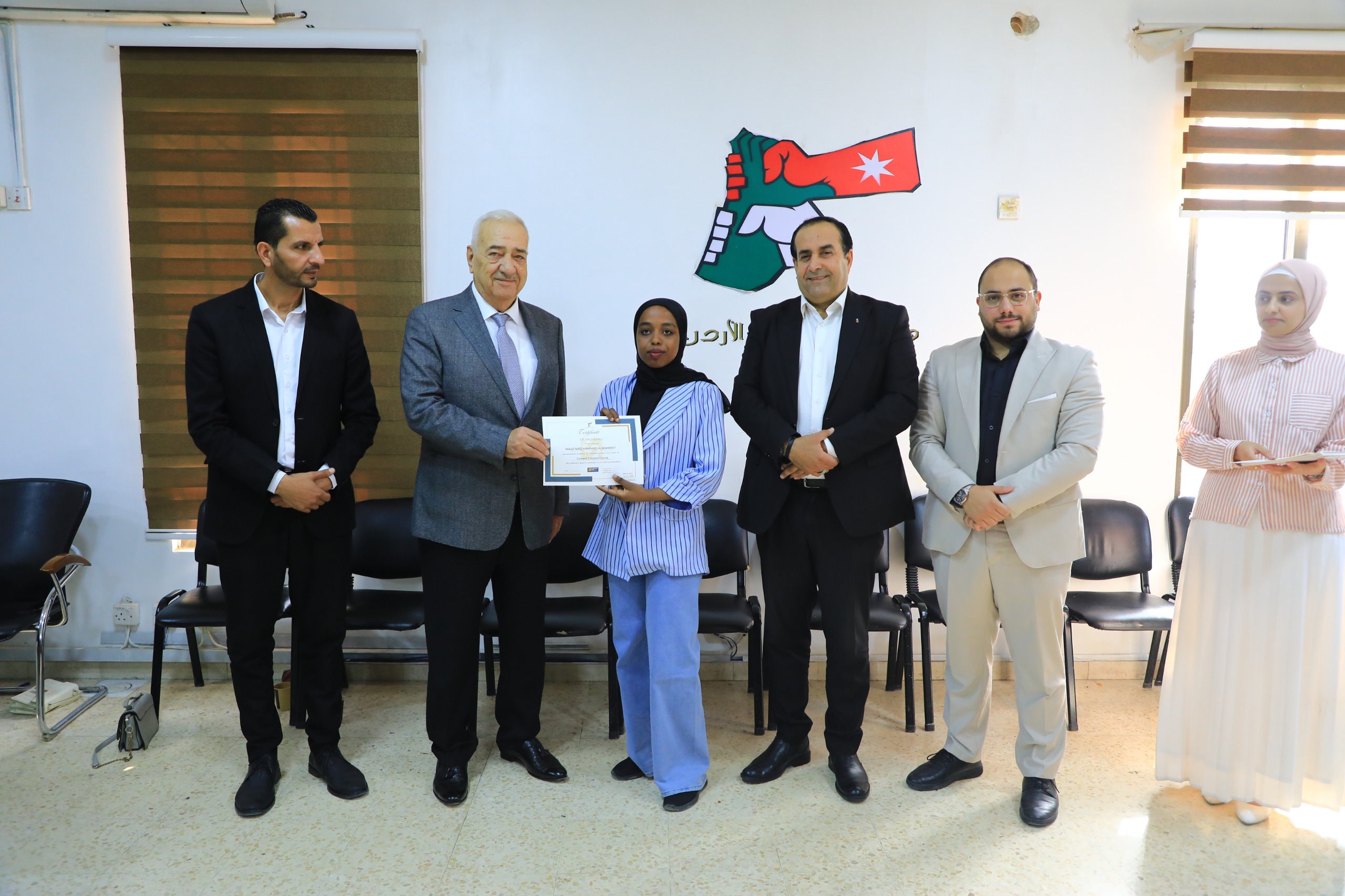 برعاية سعادة الدكتور يعقوب ناصرالدين، رئيس مجلس أمناء جامعة الشرق الأوسط، اختتمت هيئة شباب كلنا الأردن، الذراع الشبابي لصندوق الملك عبدالله الثاني للتنمية، فعاليات دورة تدريبية حول "صناعة المحتوى وإدارة منصات التواصل الاجتماعي"، استهدفت مجموعة من الشباب.