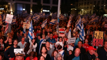 ونقلت مراسلة الجزيرة أن "آلاف الإسرائيليين يتظاهرون أمام وزارة الدفاع بتل أبيب ويطالبون بالإطاحة بحكومة نتنياهو".