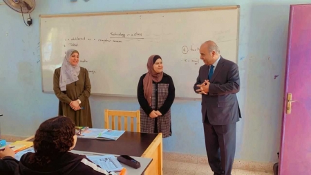 واطلع على مدى مواظبة الطلبة على الدوام بتفقد الغرف الصفية، مشيرًا إلى أن الوزارة ستقوم بتطبيق أسس النجاح والإكمال والرسوب بحق الطلبة المتجاوزين لعدد أيام الغياب المسموحة، ومتابعة ذلك مع أولياء أمور الطلبة.