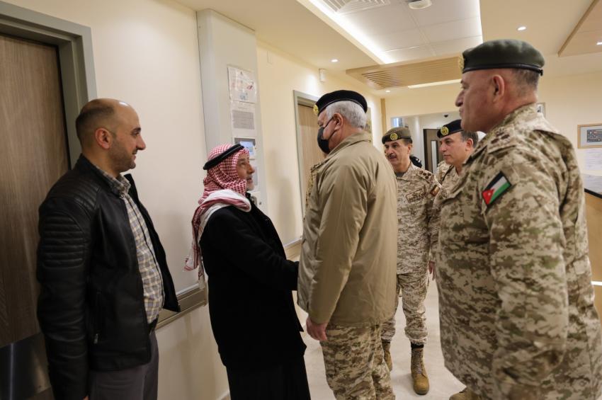 واطمأن اللواء الركن الحنيطي على الوضع الصحي للمصاب، والتي وصفت حالته العامة بالمستقرة، موجهاً بضرورة تقديم كافة أشكال الرعاية الصحية والعلاجية، متمنياً الشفاء العاجل له.