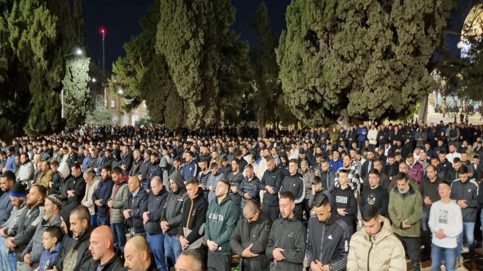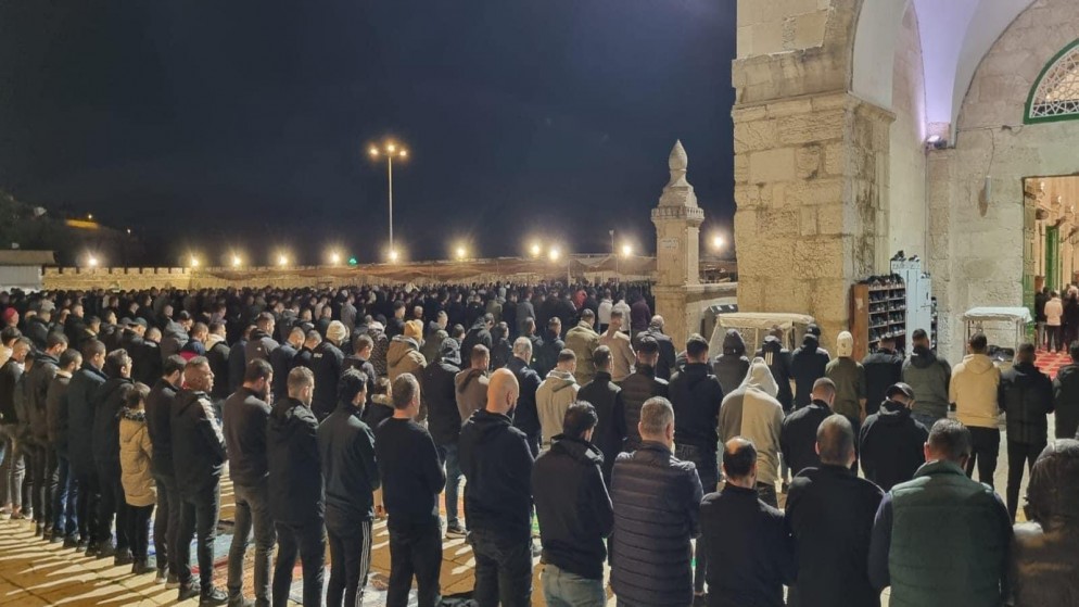 أدى 35 ألف فلسطيني، الاثنين، صلاتي العشاء والتراويح في المسجد الأقصى المبارك، رغم تضييقات الاحتلال الإسرائيلي، وفقا لدائرة أوقاف القدس.