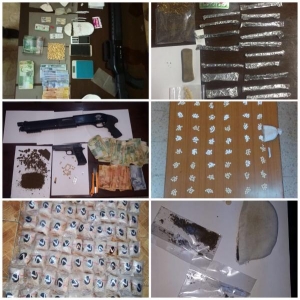 وفي القضية الثانية وبناء على معلومات عن أحد الأشخاص المطلوبين بقضايا بيع وترويج المواد المخدرة وبعد التأكد من وجوده داخل منزله تمت مداهمته والقي القبض عليه وبتفتيش المنزل عثر بداخله على (18) قطعة من مادة الحشيش المخدر و(25) حبه من حبوب الكبتاجون المخدرة وكمية من بودرة الحشيش الصناعي المخدر .