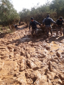 وشاركت ولا تزال ناقلات الجنود والآليات والفرق التابعة لقوات الدرك في عمليات الإنقاذ، وتمكنت ليلة أمس من فتح الطريق الصحراوي بعد سحب عشرات المركبات المدنية التي كانت عالقة في منطقة ضبعة، وتسببت في إغلاق الطريق العام لعدة ساعات