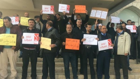 - نظمت فعاليات نقابية اليوم الاحد وقفة احتجاجية امام مجمع النقابات المهنية رفضا لقانون الضريبة.