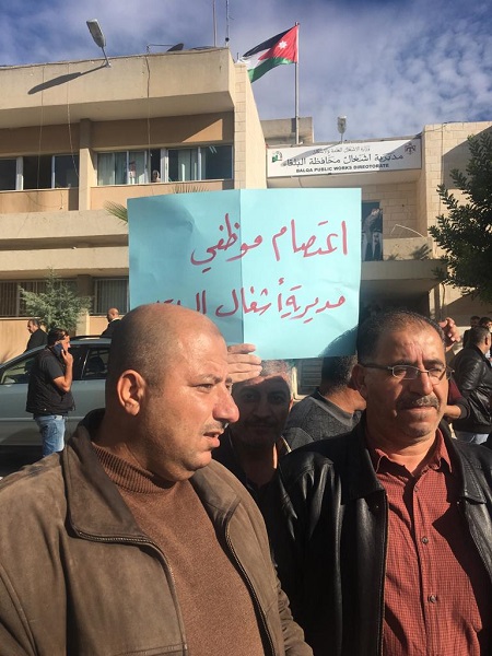 موظفو أشغال البلقاء يعتصمون للمطالبة بحقوقهم المالية