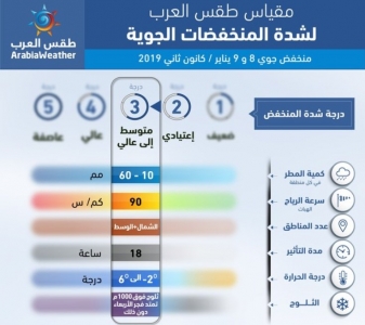 يذكر أن مركز طقس العرب الإقليمي قام بابتكار مؤشر لقياس شدة المُنخفضات الجوية وفعاليتها، مُكون من 5 درجات؛ بهدف التسهيل على المواطنين معرفة درجة قوة وتأثير المنخفض الجوي وطريقة التعامل مع الحالة الجوية، فكلما زادت درجة شدة المنخفض وجب الاحتياط أكثر والانتباه من الظواهر الجوية المُترافقة معه.