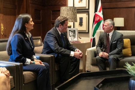 استقبل جلالة الملك عبدالله الثاني وفدا من لجنة القوات المسلحة في مجلس النواب الأمريكي برئاسة النائب الديمقراطي جون غارامندي في لقاء بحث علاقات الشراكة الاستراتيجية بين الأردن والولايات المتحدة، وآليات تعزيز التعاون بينهما خصوصا في المجالين العسكري والدفاعي .