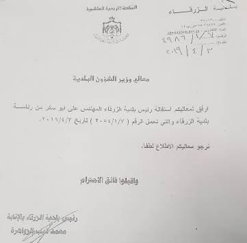 أبو السكر يستقيل رسمياً من بلدية الزرقاء