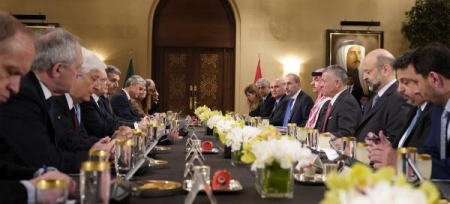 وتابع جلالته " أثمن دعم بلادكم التاريخي للأردن في مواجهة التحديات المختلفة، فأنتم شريك اقتصادي حيوي وشريك في التصدي للتحديات في الإقليم وتحقيق الأمن والاستقرار في منطقة حوض البحر المتوسط. ولدينا رؤى مشتركة حول عملية السلام ومستقبل القدس. ونحن نقدر دور بلادكم القيادي في سبيل تحقيق الاستقرار في منطقتنا".