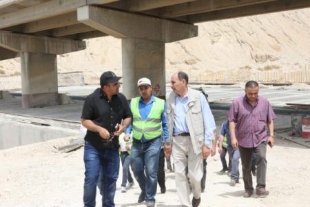 قام وزير الاشغال العامة والاسكان المهندس فلاح العموش اليوم السبت بجولة ميدانية حيث تفقد اعمال تنفيذ الحماية لجسور البحر الميت / سويمة / غور حديثة و صيانة المواقع المتضررة حيث بين العموش بان العمل مستمر حسب البرنامج المعد لهذه الغاية من قبل المقاولين المنفذين للمشروع