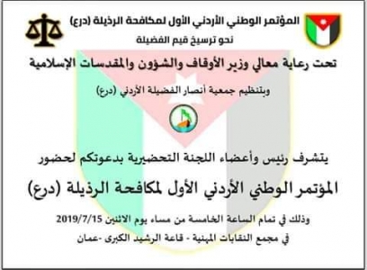 نفت جمعيّة أنصار الفضيلة الأردنيّ – درع المعلومات المتداولة حول قرار وزارة الداخليّة بمنعِ انعقاد المؤتمر ، والذي ستعقده الجمعيّة الأثنين القادم 15/7 .