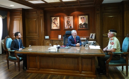 واجتمع جلالته باللواء الركن الحنيطي ومديري الأجهزة الأمنية فترة من الوقت، تم خلالها بحث عدد من الأمور والقضايا التي تهم القوات المسلحة والأجهزة الأمنية في مختلف المجالات العملياتية والتدريبية واللوجستية.