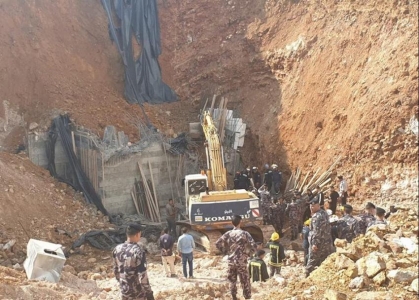 بأعمال إنشائية بمنطقة الدوار الثامن نتج عنه محاصرة ثلاثة أشخاص تحت الردم تم إخراج وفاة من تحت الإنقاذ ولا زال العمل جاري على إخراج المحاصرين الآخرين .