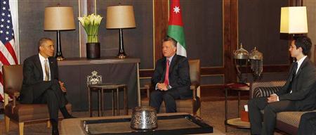 - أجرى الملك عبدالله الثاني والرئيس الأمريكي باراك أوباما مباحثات في عمان امس الجمعة ركزت على علاقات التعاون الثنائي الأردني الأمريكي، وتطورات الأوضاع الراهنة في منطقة الشرق الأوسط.