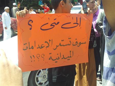 وعبر المشاركون عن غضبهم من استمرار اعتقال الابرياء وتكرار الاعتداءات باطلاق النار على الحافلات والسيارات في منطقة الحسينية على الطريق الصحراوي وسط توتر واحتقان شديد.