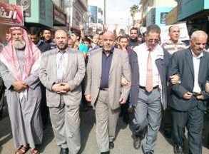 وتقدم نائب المراقب العام لجماعة الاخوان المسلمين زكي بني ارشيد التظاهرة التي شهدت مشاركة شعبية لافتة، وسط شعارات طالت النظام.