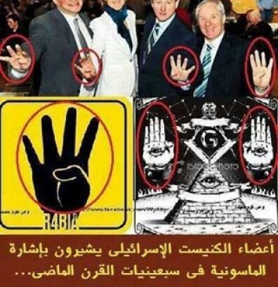 بالصور: أصل علامة رابعة “الإخوانية”.. صهيوينة ماسونية