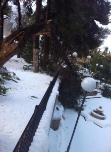 ووبحسب مسؤولين اعتبروا أن الجامعة منطقة منكوبة بعد سقوط مئات الاشجار المعمرة وتراكم الثلوج واغلاق كافة الشوارع الداخلية وتحطم مبنى "كافتيريا" تابع للجامعة واسواق وأكواخ تجارية وانهيار شبكة الصرف الصحي بشكل جزئي.