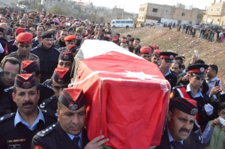 وكان الفريق الأول الركن الدكتور توفيق حامد الطوالبة وكبار ضباط الأمن العام ومجموعة حرس الجنازة في استقبال جثمان الشهيد لحظة وصول جسده الطاهرأرض الوطن صباح اليوم على متن طائرة الملكية الأردنية القادمة من الخرطوم في مطار الملكة علياء الدولي .
