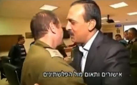 بث التلفزيون الاسرائيلي مقطعا ظهر فيه ضابط في الجيش الاسرائيلي يستقبل تجارا في غزة كانوا متواجدين في اسرائيل .