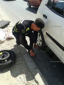 الراي نيوز - جسد أحد أفراد الامن العام شعار " الشرطة في خدمة الشعب " الى واقع ملموس صباح اليوم الاحد، من خلال مساعدته احد المواطنين في تبديل اطار سيارته قرب مبنى دائرة الاحوال المدنية بمنطقة طبربور .